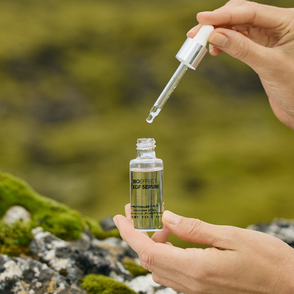 EGF or Epidermal Growth Factor, is one of the most important proteins found naturally in our skin and plays a major role in the healthy function of collagen, elastin, and hydration. As we age, EGF levels start to decrease leaving our skin vulnerable to aging. To help combat the visible effects of aging, BIOEFFECT invented a way to produce a plant-based EGF in barley. Our Barley EGF is a sustainable, renewable ingredient grown in our ecologically-engineered greenhouse in Iceland that is powered by geothermal energy.