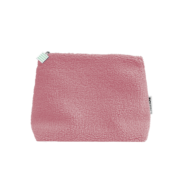 A soft and stylish teddy beauty bag, crafted from plush recycled polyester with a 100% cotton lining. Compact yet spacious, the bag is finished with a premium metal top zipper and fully machine washable — perfect for everyday use and travel.